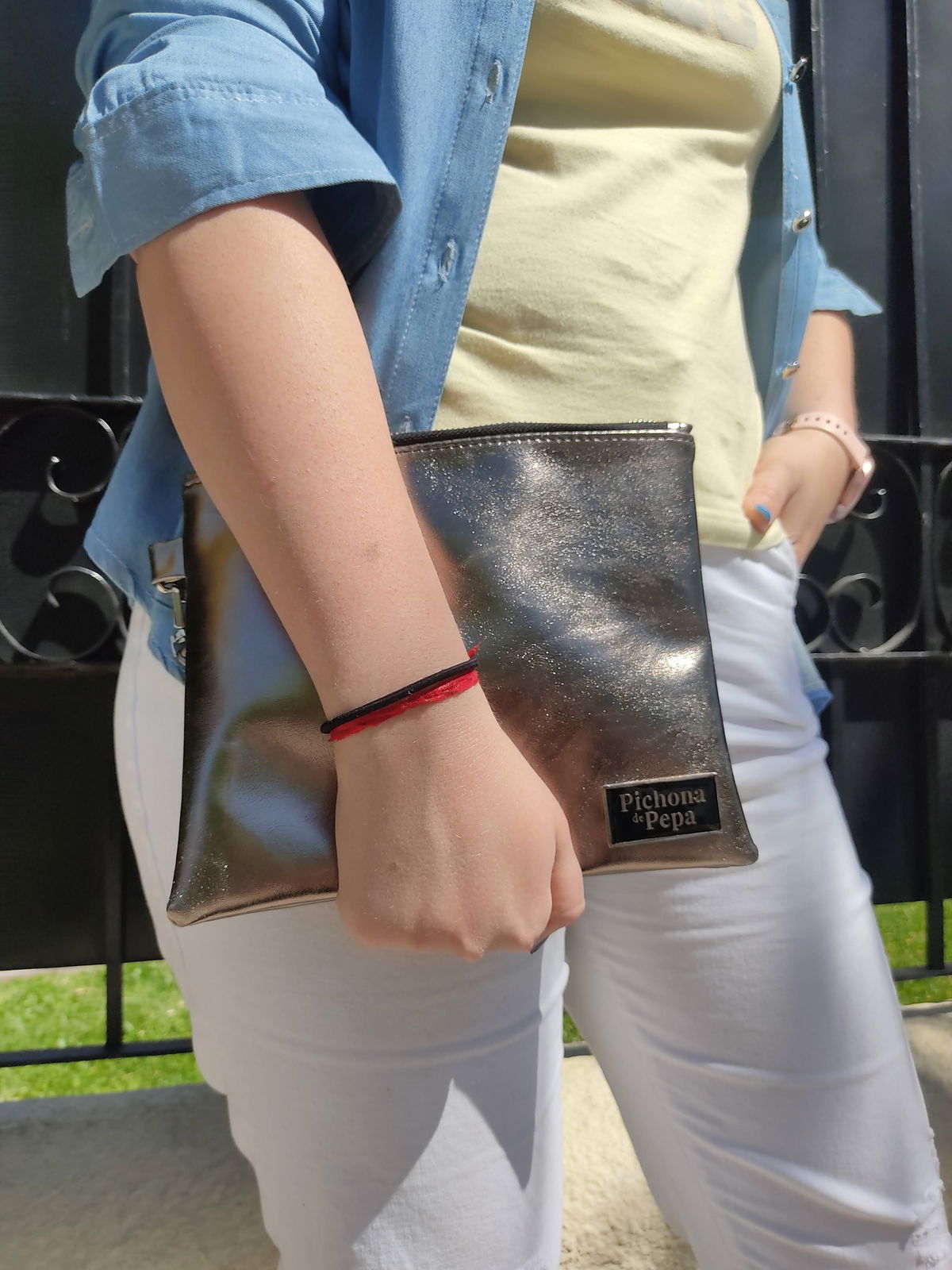 x 20 cm. Trae una correa de mano desmontable y es el accesorio ideal para completar tus looks cuando tenes que salir con pocas cosas.