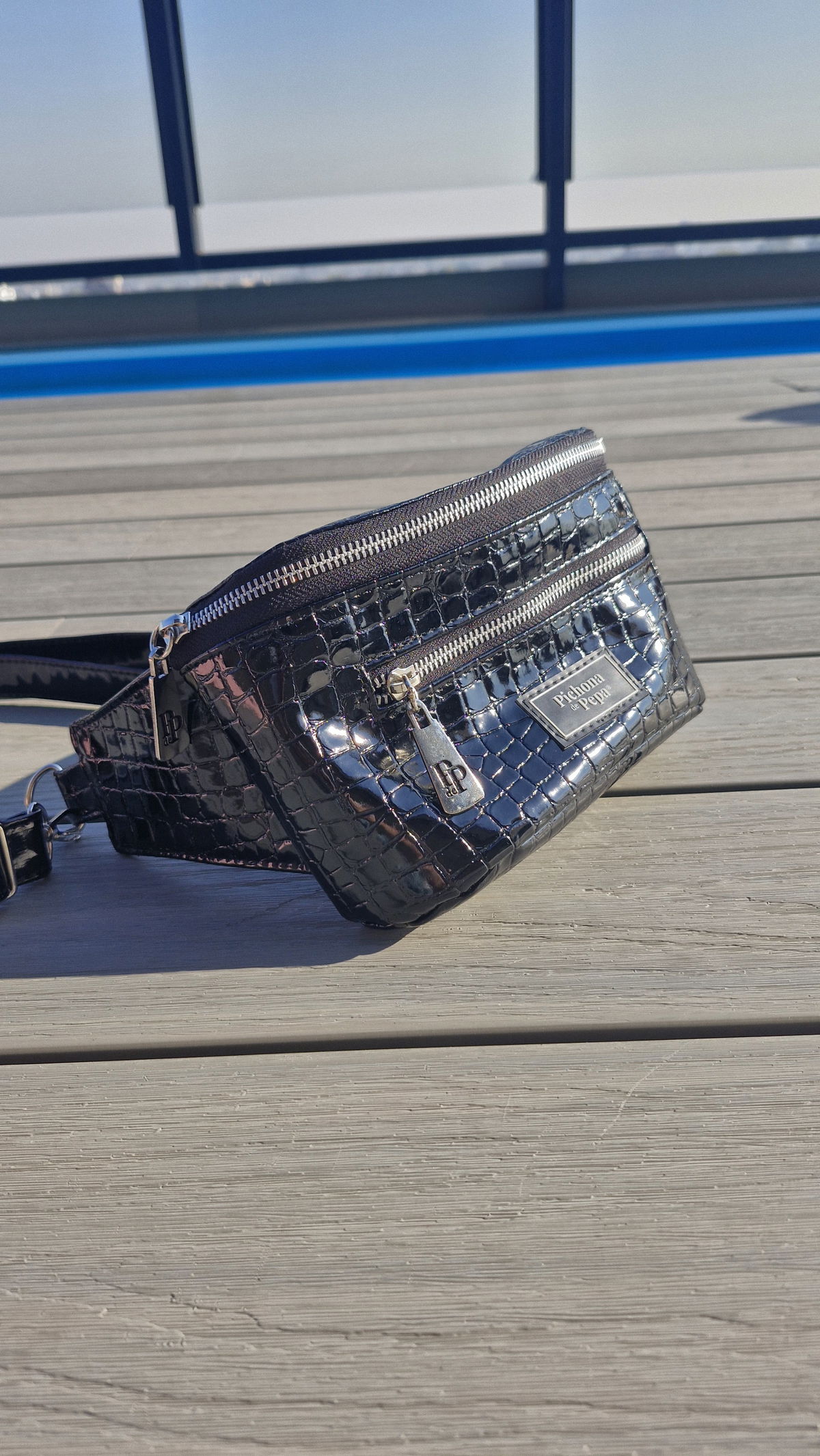 Mide 21 cm de ancho x 14 cm de alto x 9 cm de profundidad, están forradas y son mega cancheras. Tiene un compartimiento principal, con cierre de aluminio y en el interior un bolsillo tipo división. En el frente tiene otro bolsillo, también con cierre, de 20 cm de ancho x 8 cm de alto. La correa es regulable.