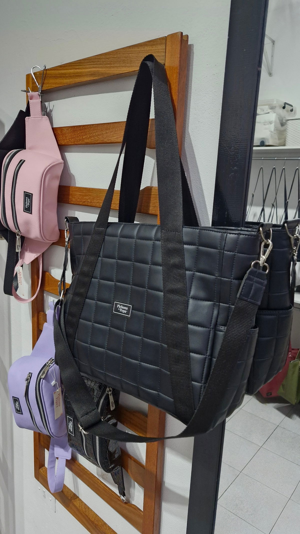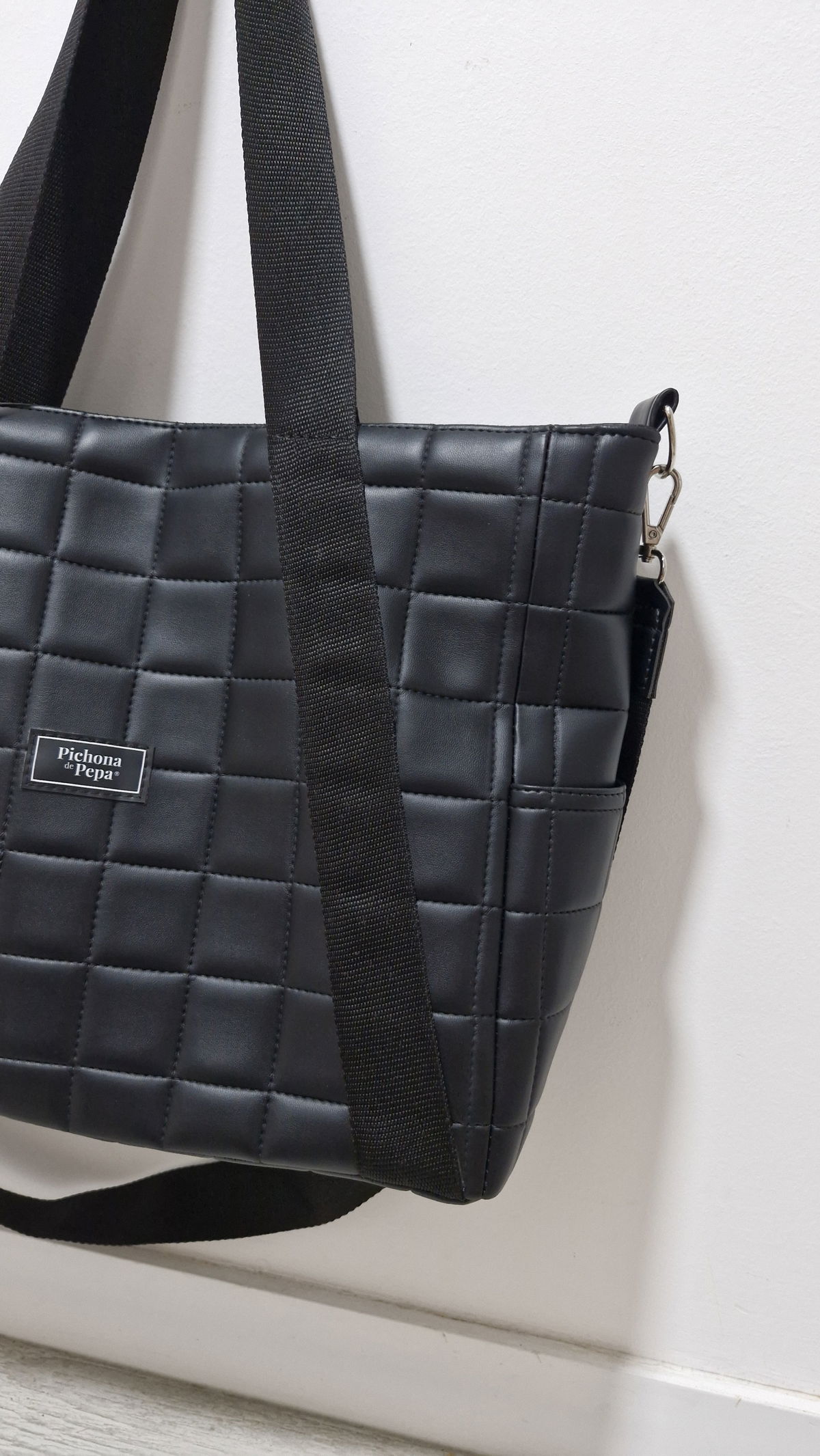 Mide 35 cm de ancho x 30 cm de alto x 14 cm de profundidad y está confeccionada en tela acolchonada.