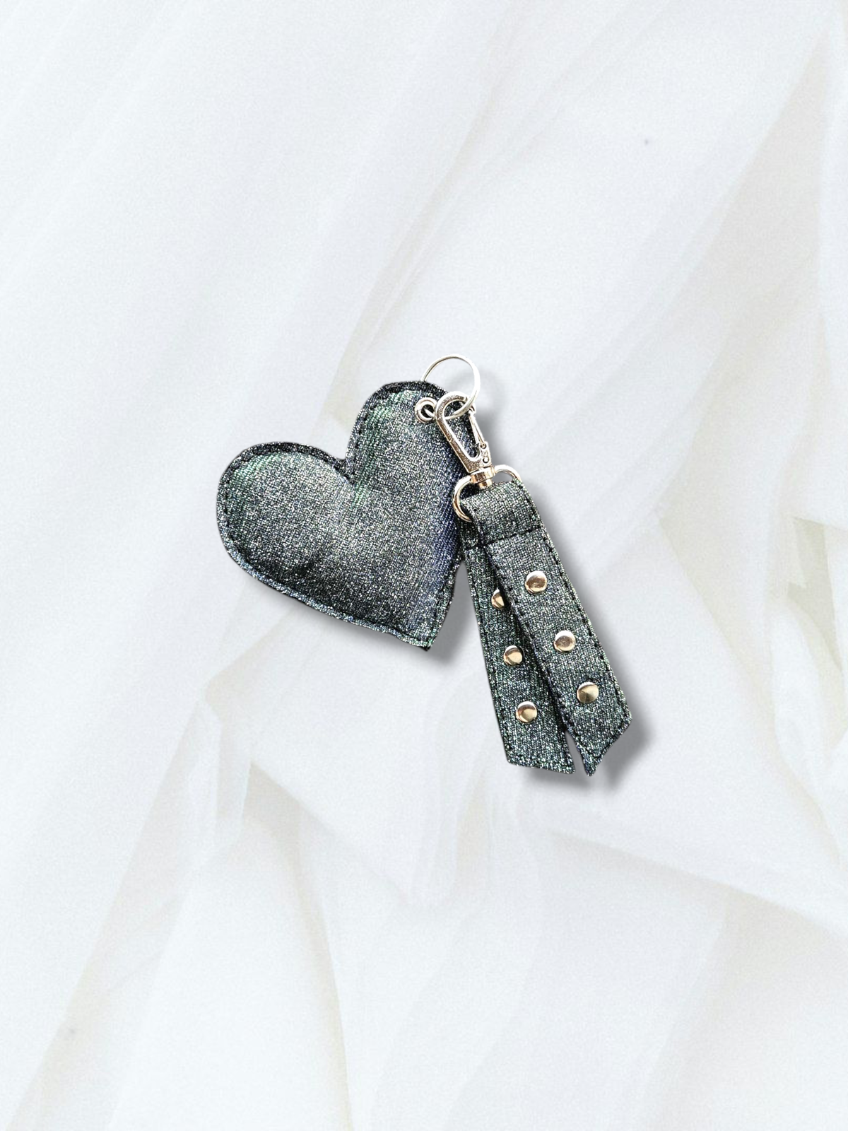 El corazón mide 8 cm aprox, tiene una argolla de llavero y un mosquetón. Podes usarlos juntos o por separado.