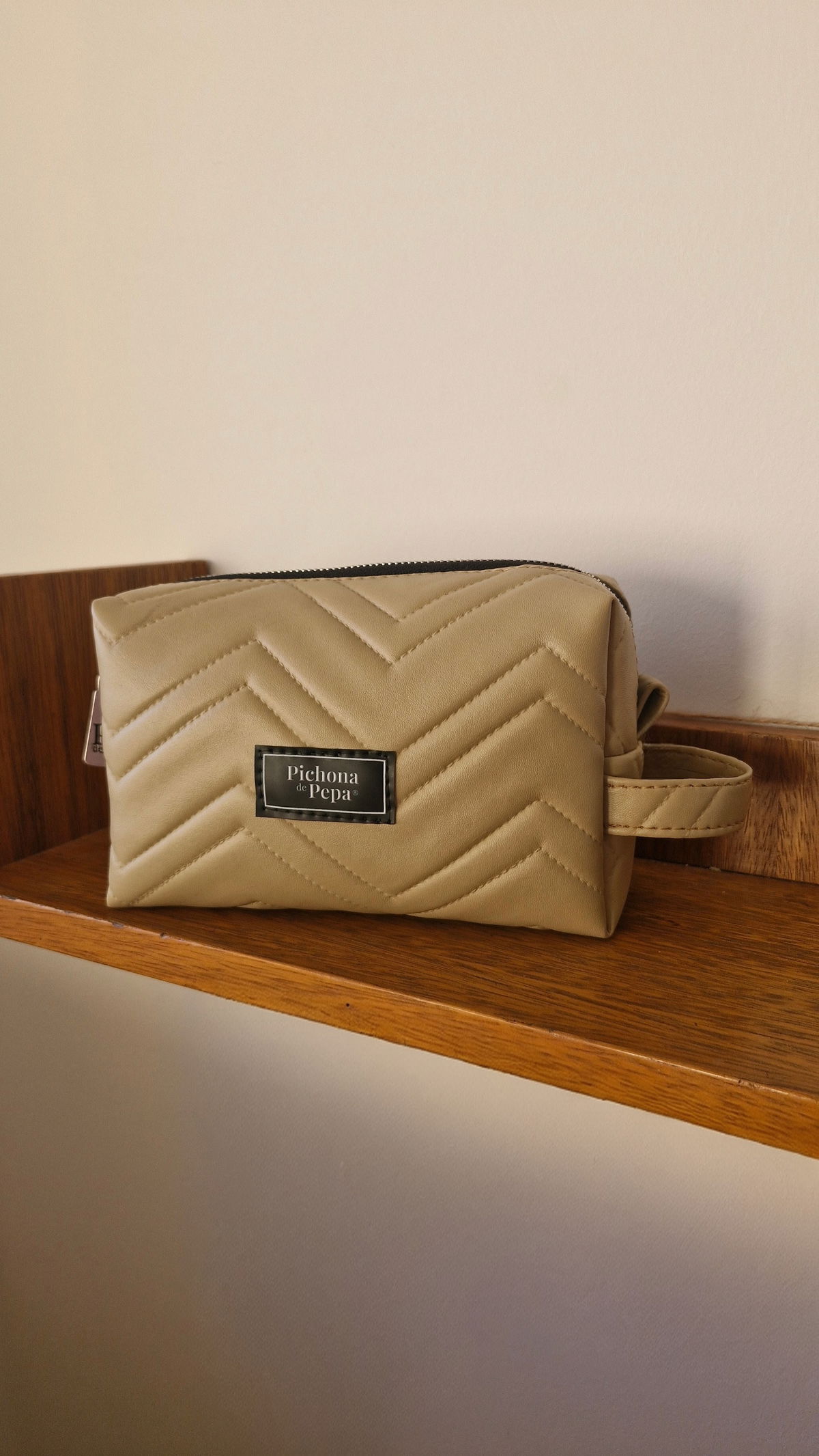 Mide 20 cm de largo, por 12 de alto, por 7 cm de profundidad. Tiene cierre metálico y su interior esta forrado con tela impermeable, lo cual permite limpiar fácilmente las manchas.