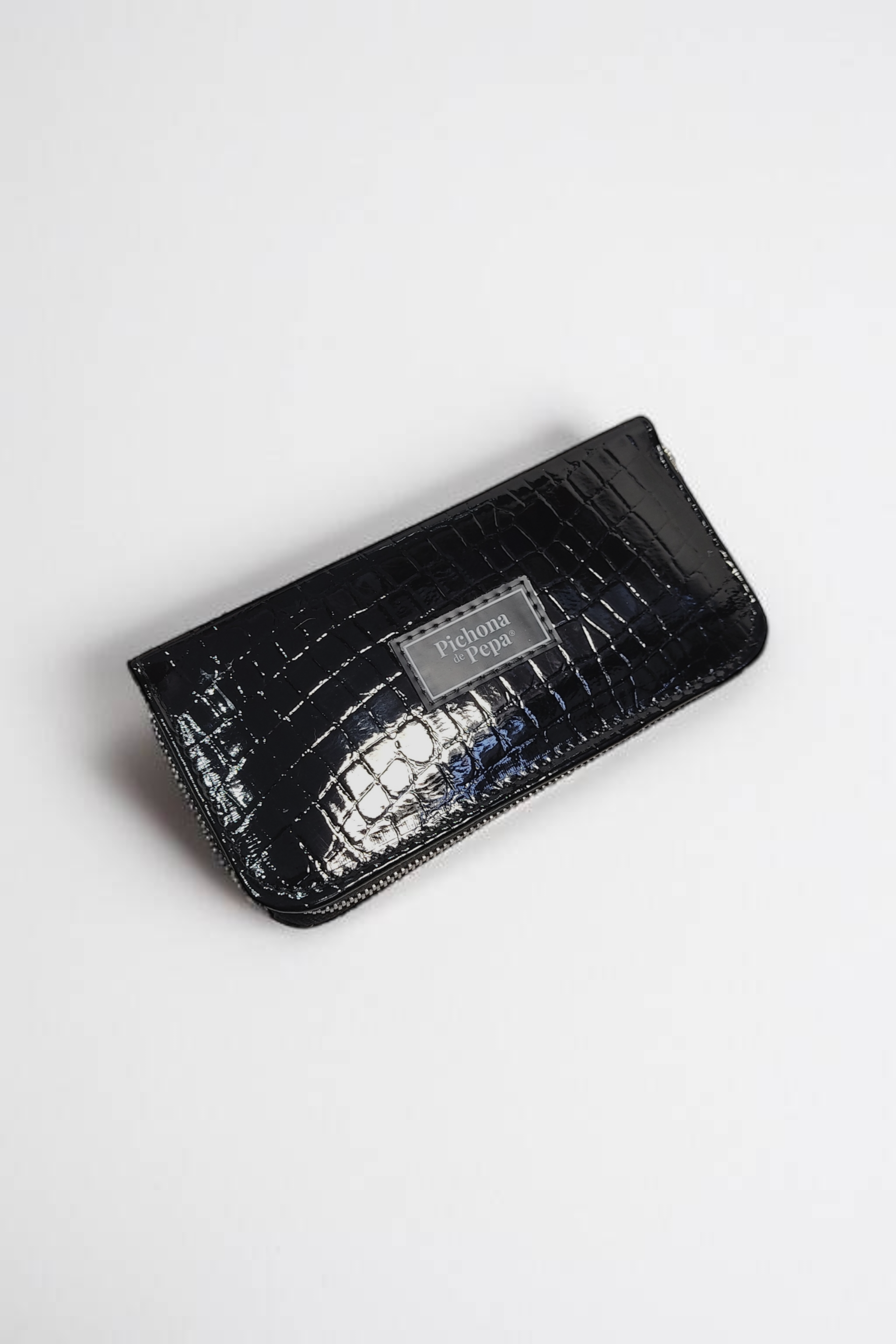 Billetera con cierre negro croco