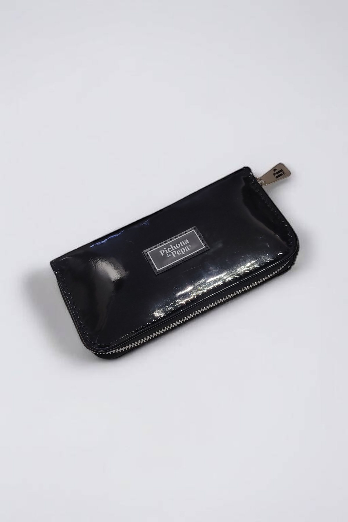 Billetera con cierre de 10 cm x 20 cm con espacio para 8 tarjetas, 2 bolsillos, 3 compartimentos para billetes y 1 monedero central.