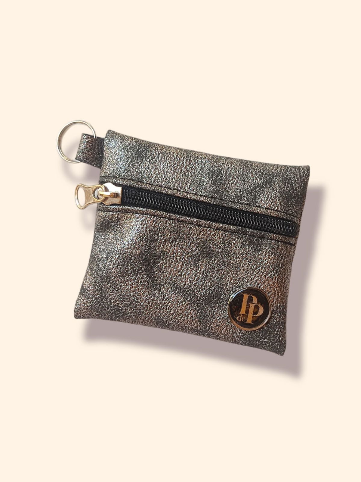 Mide 11 cm de alto x 9 cm de ancho. Tiene una argolla tipo llavero para que puedas colgarlo con tus llaves o de donde quieras.