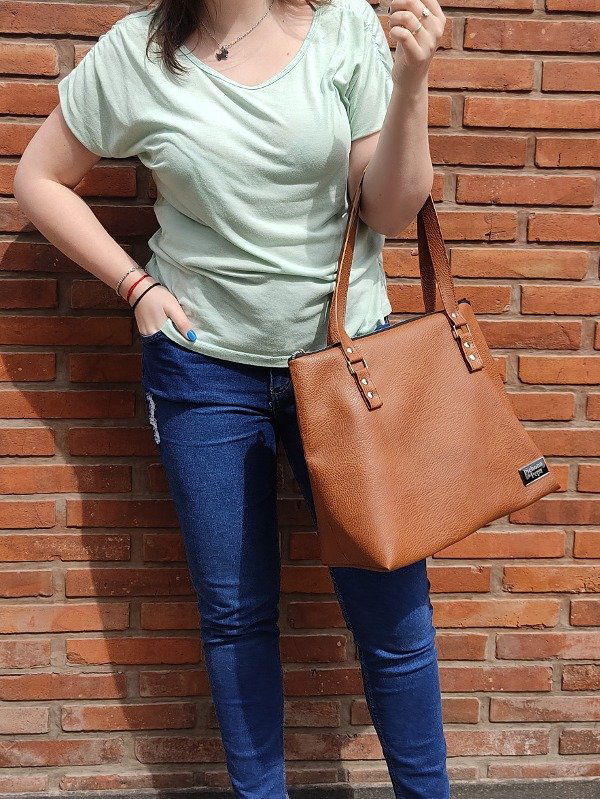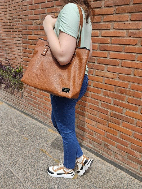 Mide 31 cm de alto por 36 cm de ancho en su base y 39 cm de ancho en su parte superior, con una profundidad de 15 cm. En su interior está completamente forrado y tienen un bolsillo interno de 14 cm de alto por 22 cm de ancho, con una división a los 10 cm (es decir que queda un bolsillo de 10 cm y otro de 12 cm de ancho). Tiene cierre de punta a punta y correas fijas de 60 cm de largo aproximadamente. Es súper espacioso, entran cuadernos A4 y mil cosas más!