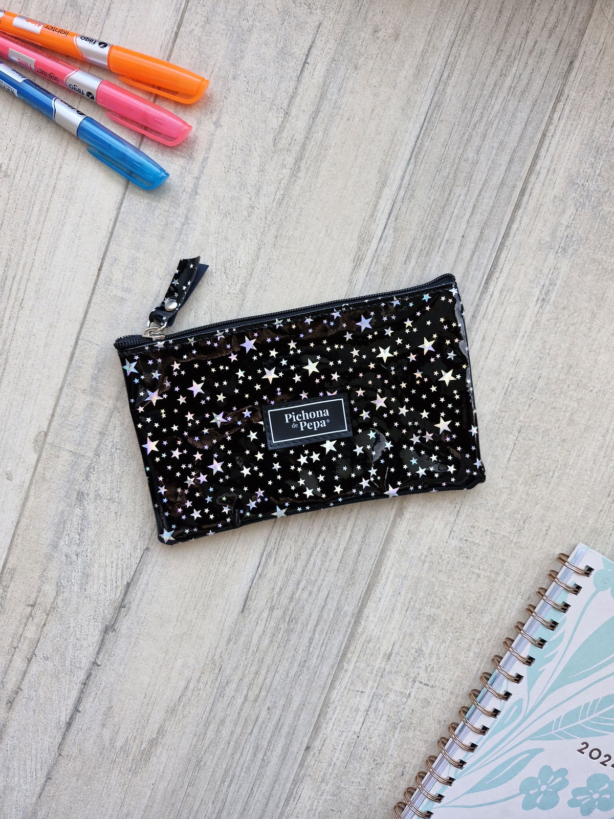 Mide 12 cm de alto x 20 cm de largo. La podes usar como cartuchera o como neceser.