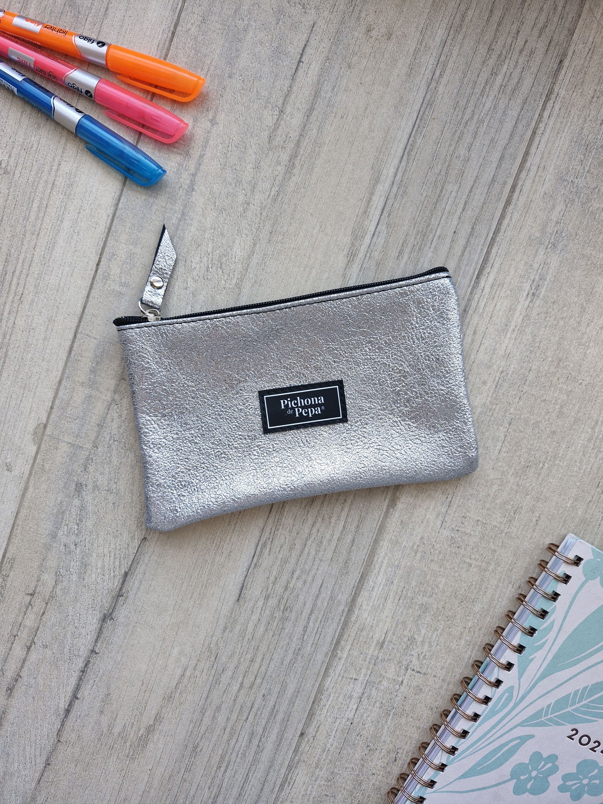 Cartuchera chica plateada con brillos