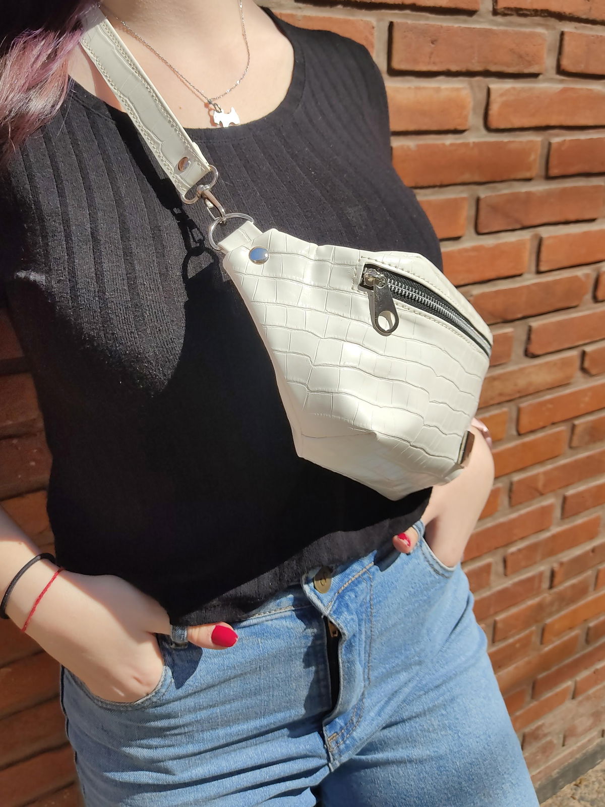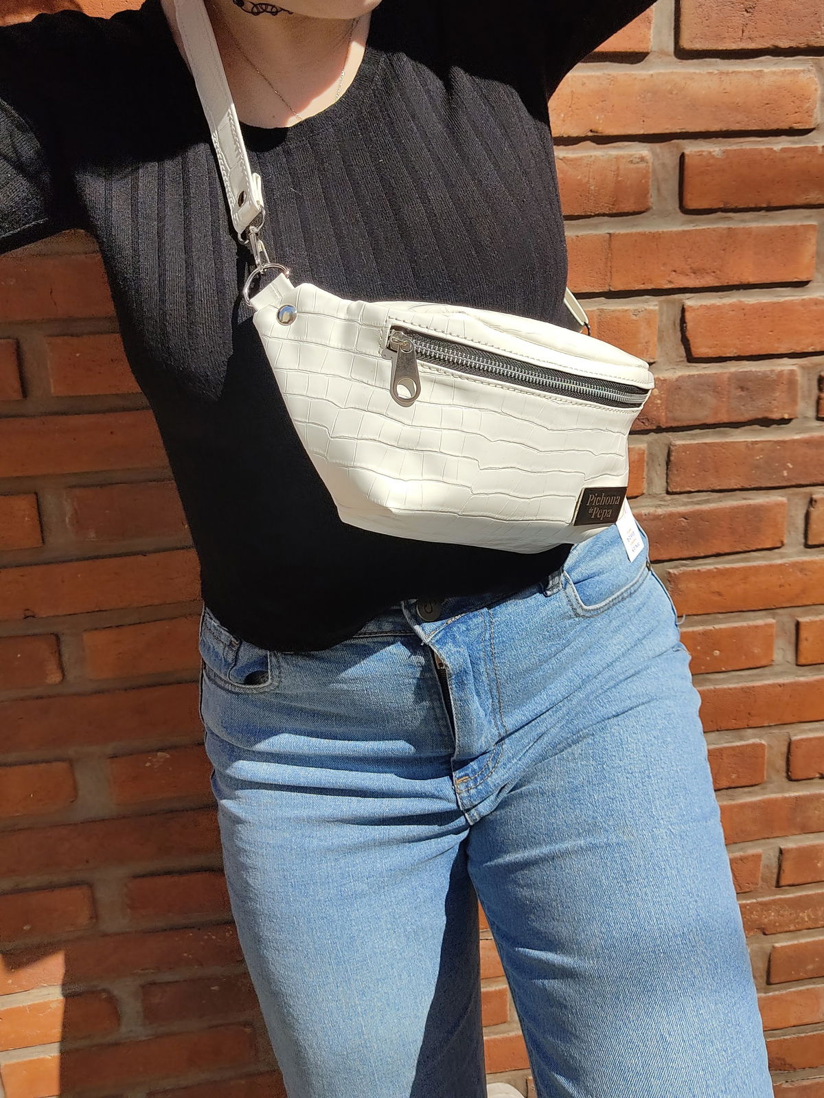 Mide 35 cm de ancho x 14 cm de alto x 6 cm de profundidad, están forradas y son mega cancheras. Traen una correa cuyo largo podes regular entre 55 cm y 1 mt, con un mosquetón en cada extremo para que puedas intercambiarla con otras.