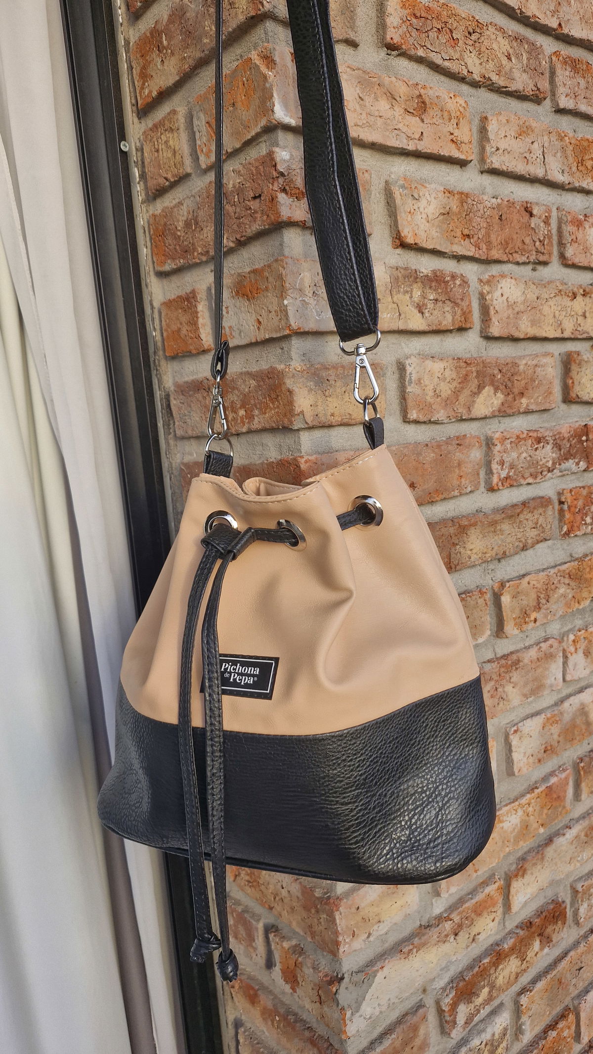 Mide 30 Cm de ancho x 28 Cm de alto x 9 Cm de profundidad, está forrada y tiene un bolsillo interno. Con la correa que pasa por los ojales se puede variar el ajuste del cierre y acomodarlo a lo que haya adentro. Además la correa se puede regular entre 0,75 Cm y 1,30 y tiene un mosquetón en cada extremo para que puedas intercambiarla con otra.