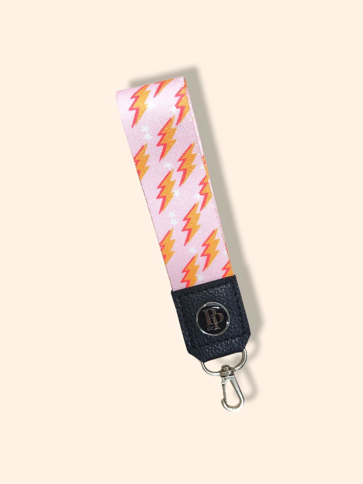 Mide 20 Cm de largo x 4 Cm de ancho. Tienen un mosquetón para que puedas usarlo de llavero o engancharlo de una billetera o sobre de mano y colgártelo de la muñeca.