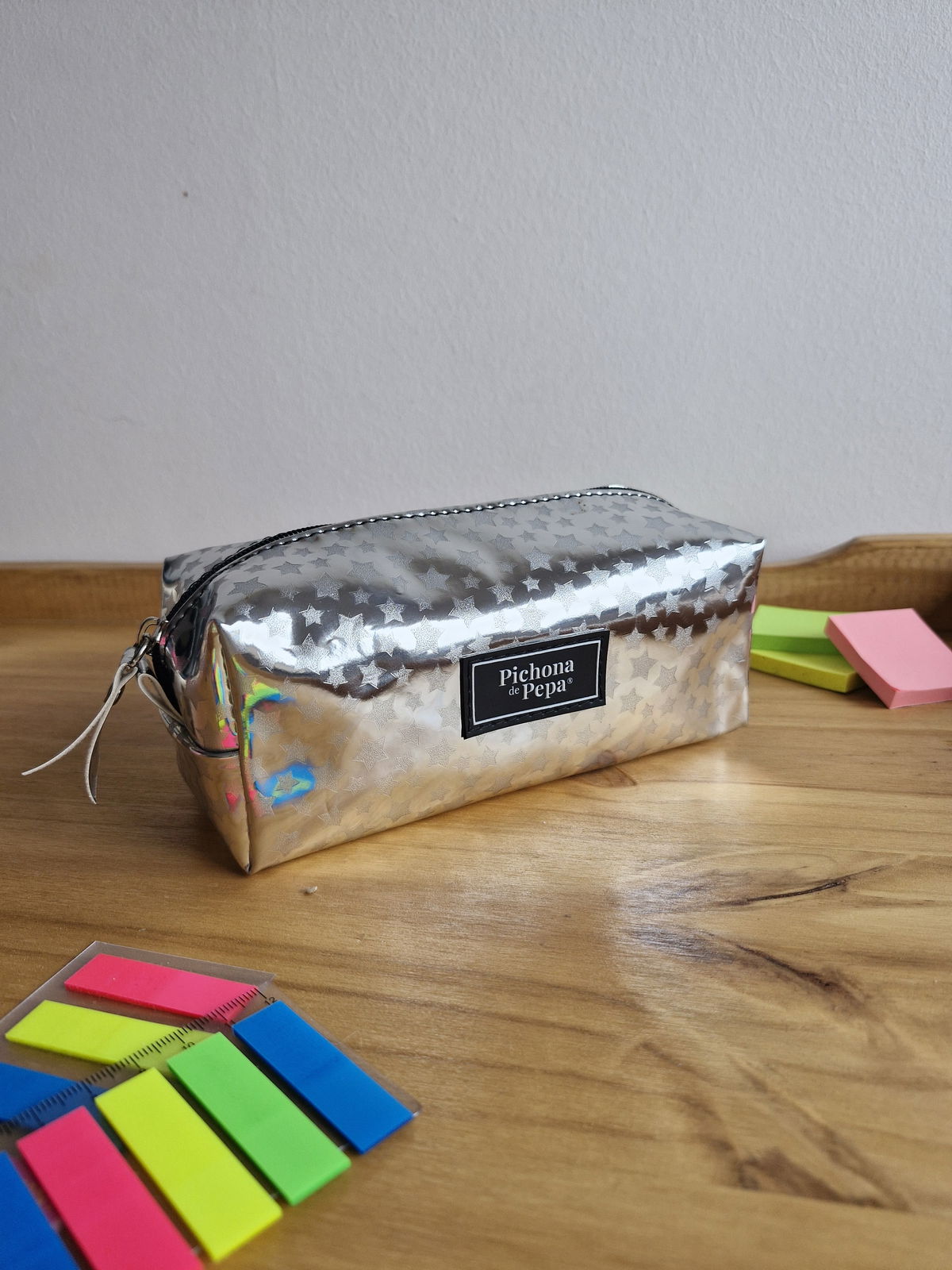 Cartuchera grande estrellas plata