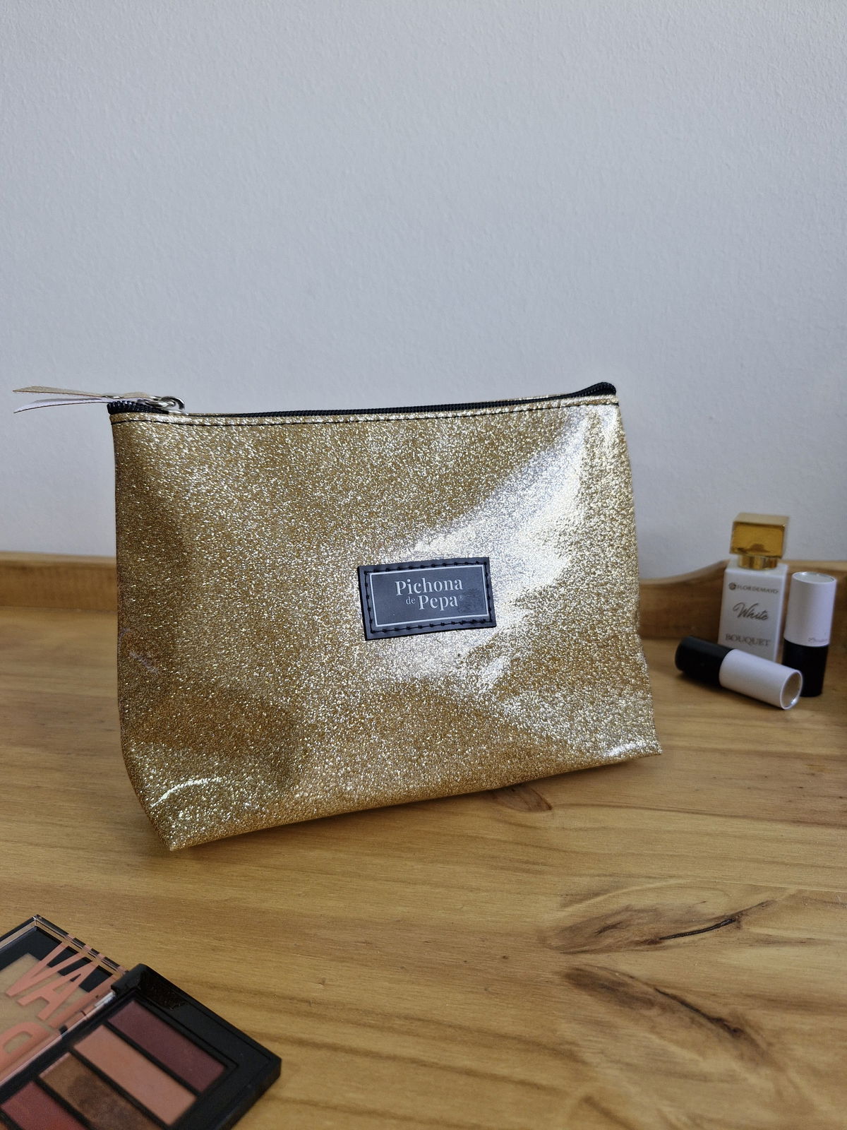 Porta cosméticos dorado glitter