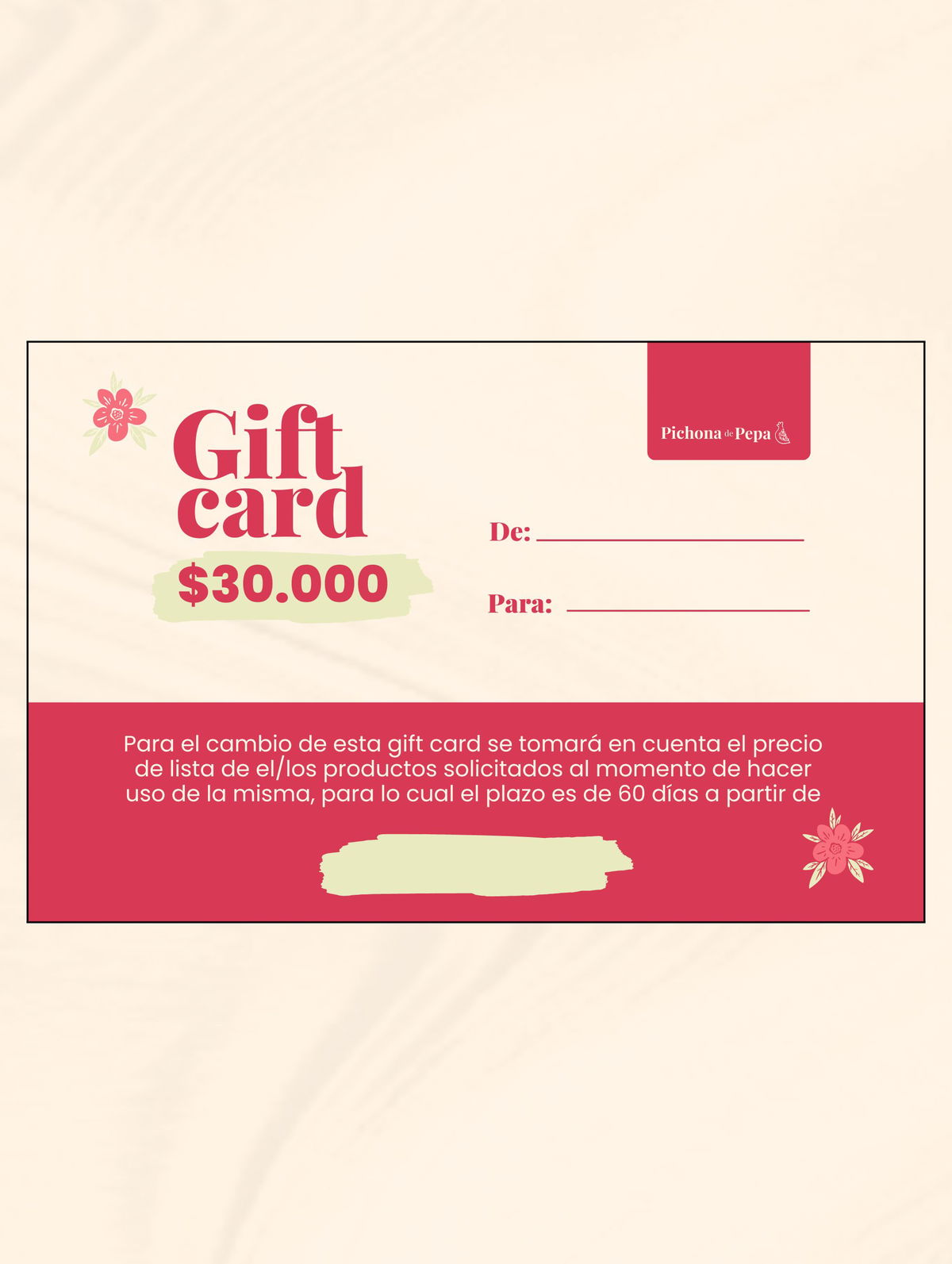IMPORTANTE: A este producto no se le aplicará descuento con ningún método de pago (pagos con transferencia o efectivo tendrán que ser por el valor que indica en la Gift Card).