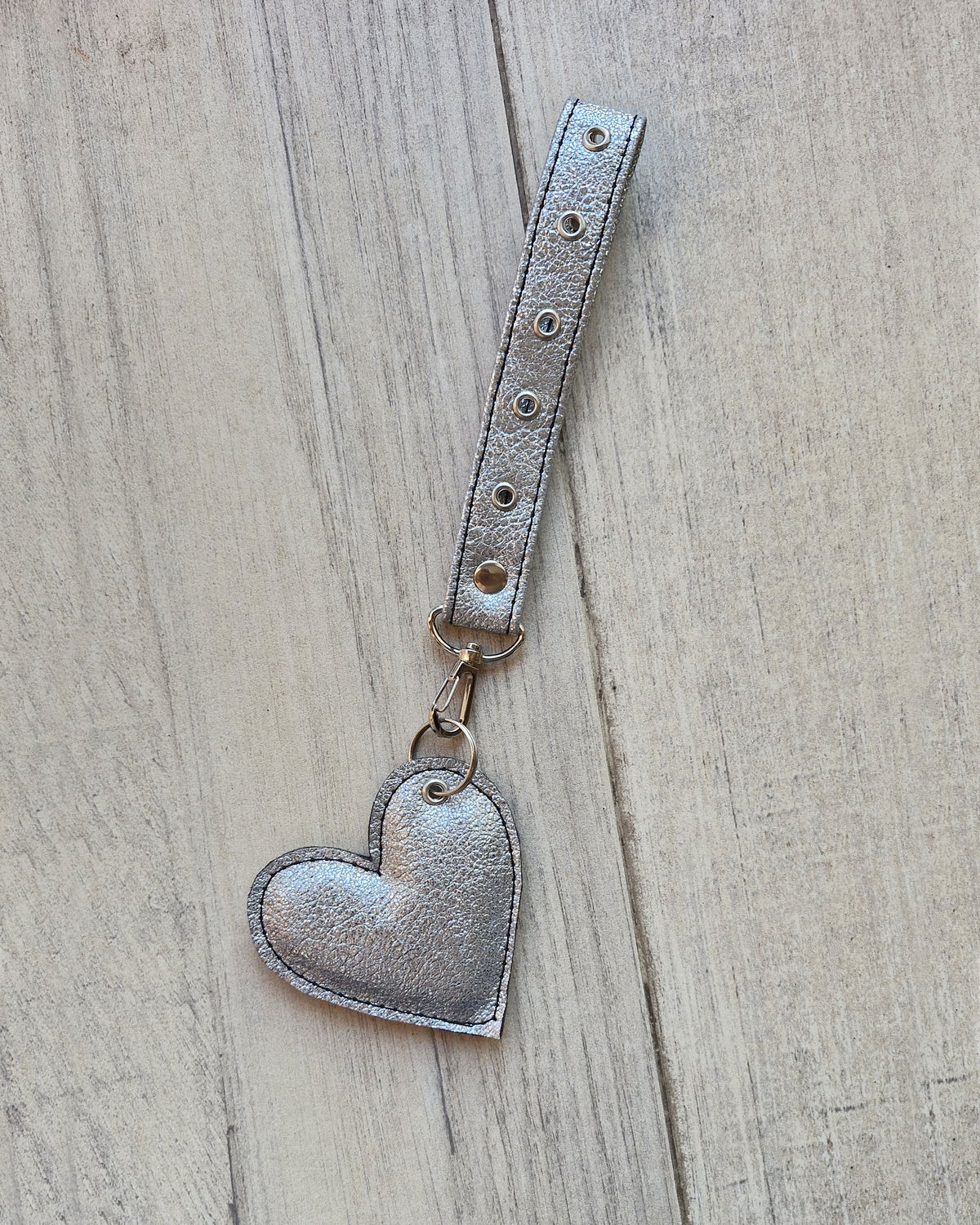 El corazón mide 8 cm aprox y tiene una argolla de llavero. La correa 16 cm. de largo. y tiene un mosquetón. Podes usarlos juntos o por separado.