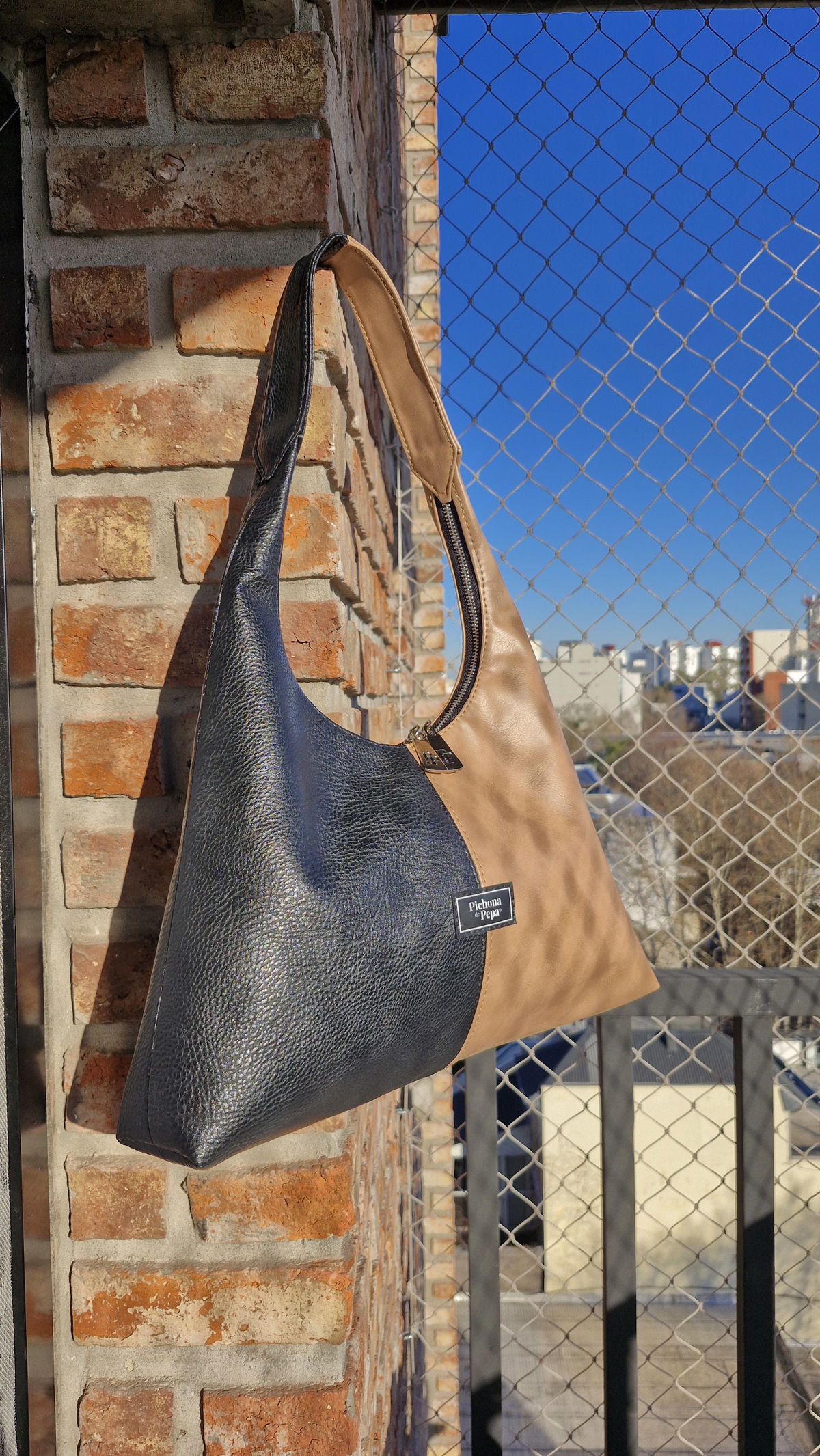 Mide 35 cm de ancho en su base por 20 cm de alto en el centro. El compartimiento principal está completamente forrado, con un cierre y 2 deslizadores que se mueven para ambas direcciones. Tiene una correa de hombro y un bolsillo interno.