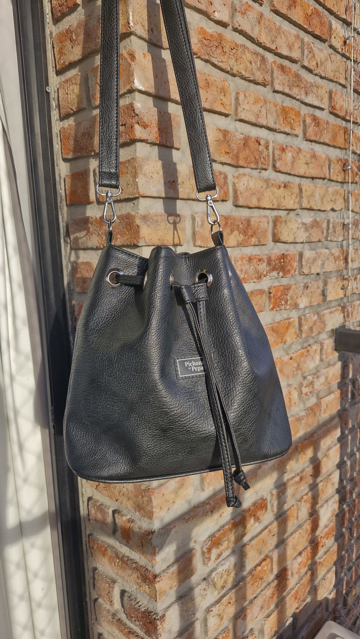 Mide 30 Cm de ancho x 28 Cm de alto x 9 Cm de profundidad, está forrada y tiene un bolsillo interno. Con la correa que pasa por los ojales se puede variar el ajuste del cierre y acomodarlo a lo que haya adentro. Además la correa se puede regular entre 0,75 Cm y 1,30 y tiene un mosquetón en cada extremo para que puedas intercambiarla con otra.