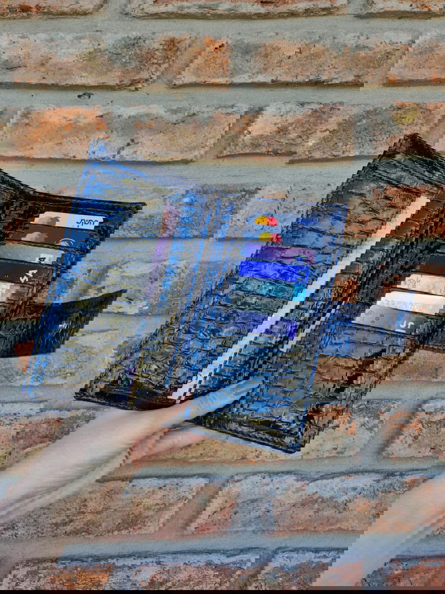 Mide 10,5 x 19,5 cerrada y 21 x 19,5 abierta. Del lado izquierdo tiene 2 solapas para billetes y un bolsillo de 9 cm de ancho. Del lado derecho tiene espacio para 7 tarjetas, un bolsillo de 7,5 cm de ancho y otro de 9 cm de ancho. A modo de cierre lleva una tira con un broche imán.