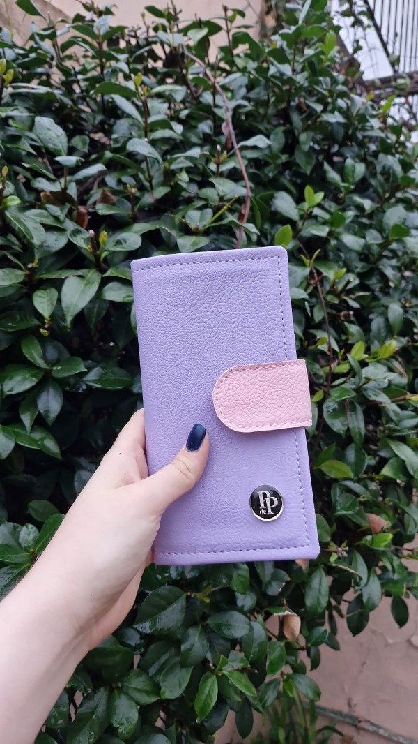 Billetera con broche combinada lila, salmón y rosa (lila)