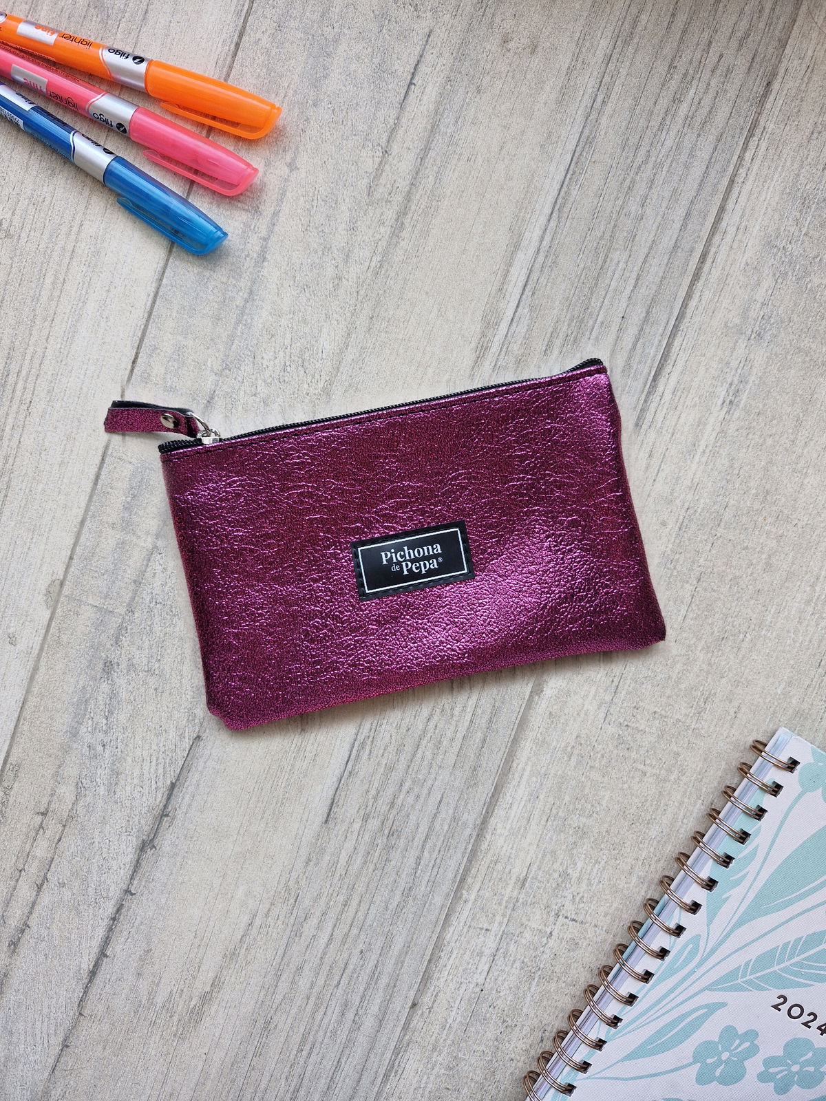 Cartuchera chica fucsia brillos