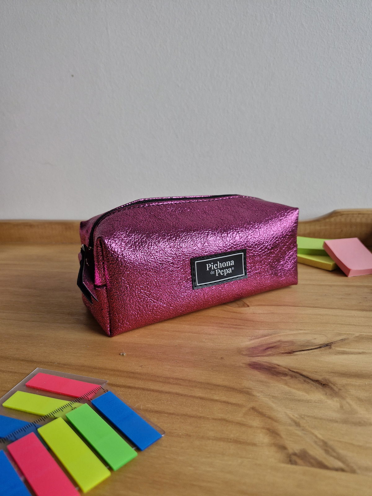 Cartuchera grande fucsia brillos