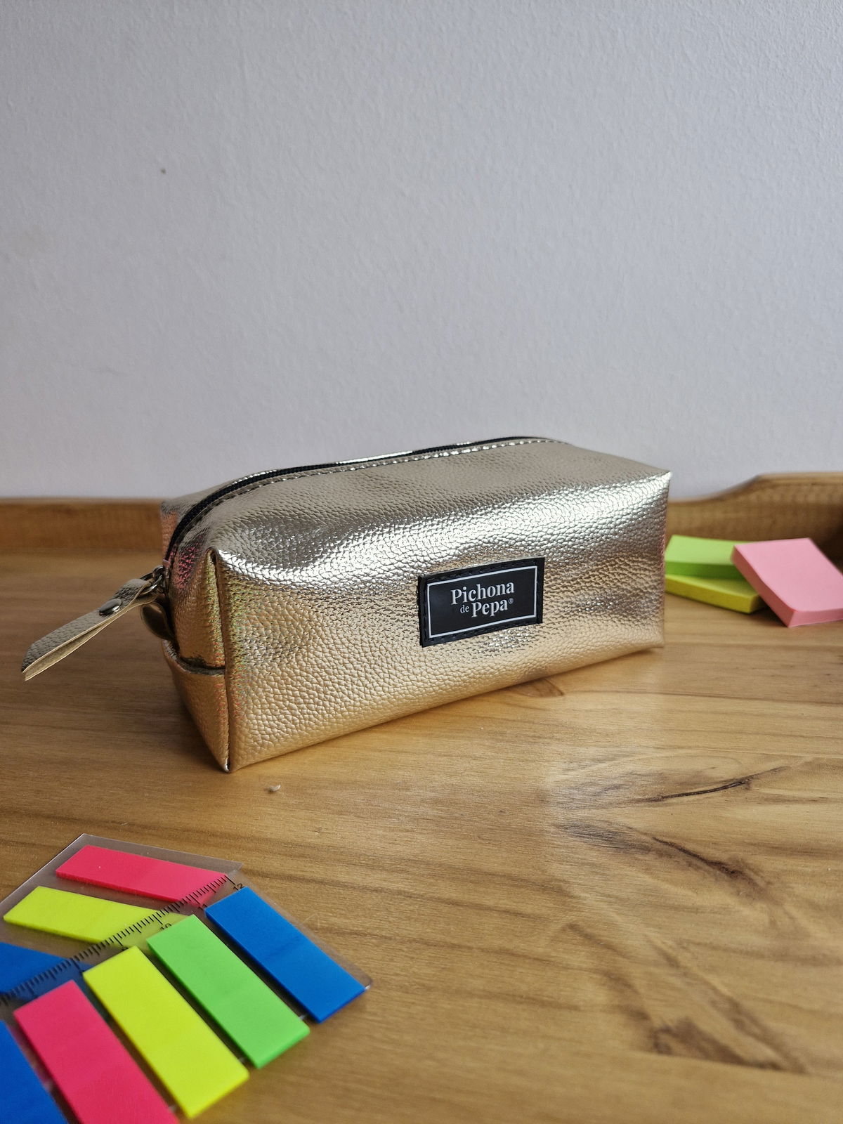 Mide 20 cm de ancho x 7 cm de alto x 7 cm de profundidad. Las podes usar como cartuchera o como neceser.