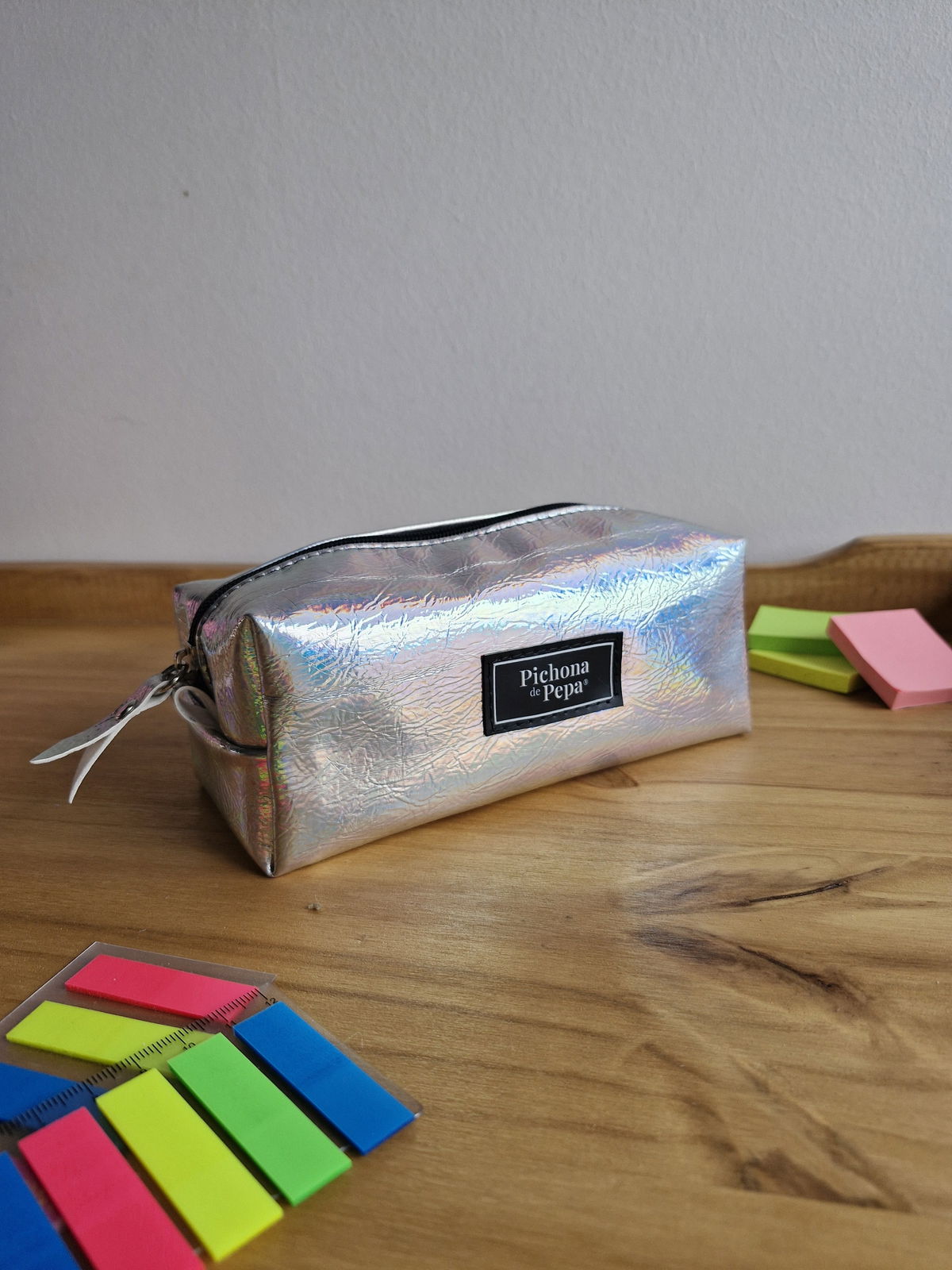Cartuchera grande plateado tornasol