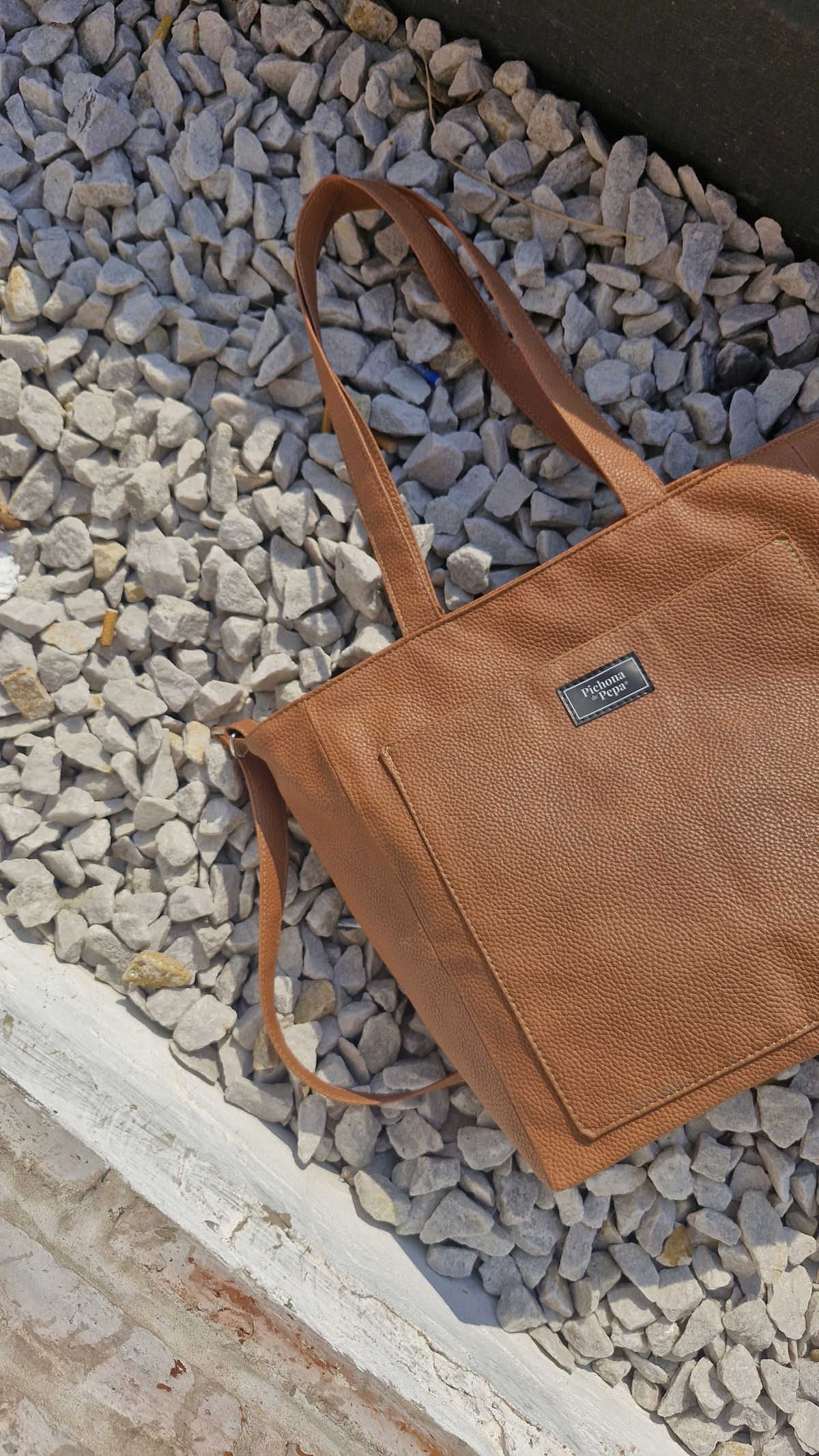 Mide 30 cm de alto por 33 cm de ancho en su base y 44 cm de ancho en su parte superior, con una profundidad de 13 cm. Esta completamente forrada, el compartimiento principal tiene cierre y en su interior cuenta con un bolsillo de 20 x 14 cm. En el frente tiene otro bolsillo de 26 cm x23 cm con un broche imán a modo de cierre. Las correas de hombro tienen 60 cm de largo y adicionalmente viene con una correa larga desmontable cuyo largo se puede regular entre 70 cm y 1,30.